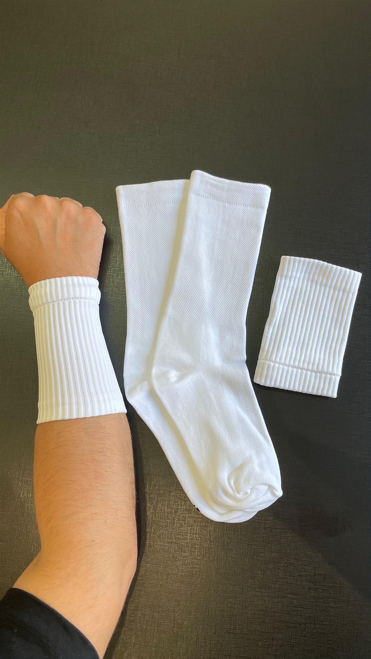 KIT Meia Poliamida e Munhequeira canelada anti suor BRANCA